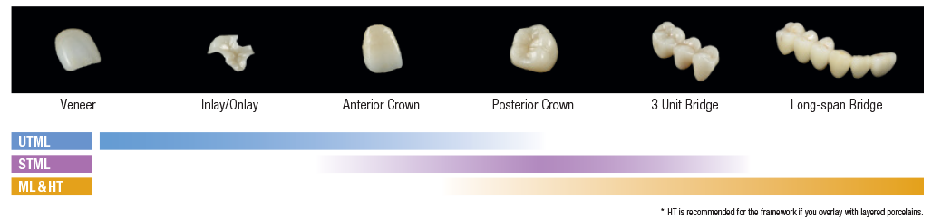 With Zirconia STML, you have the flexibility to make beautiful full contour prosthetics, regardless of the abutment color. It’s a pioneer of zirconia with a color/natural translucency and color gradient. Use KATANA Zirconia STML for your next full contour prosthetics.